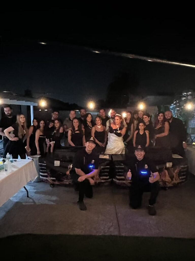 Chef Marco arrived like a culinary superhero, his portable teppanyaki grill gleaming under the San Diego sunset. “Where’s the power outlet?” he asked, already assessing the backyard like a stage.